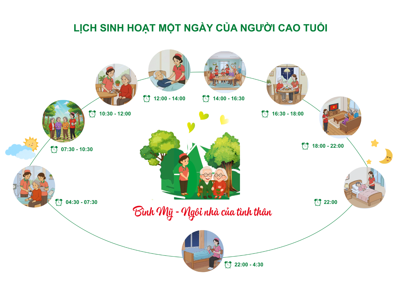Tại Bình Mỹ, chúng tôi hiểu rằng việc gửi gắm Người cao tuổi vào viện dưỡng lão là một quyết định khó khăn. Chúng tôi cam kết mang đến sự chăm sóc tận tâm và chu đáo, giúp Người cao tuổi cảm thấy được yêu thương và an toàn.